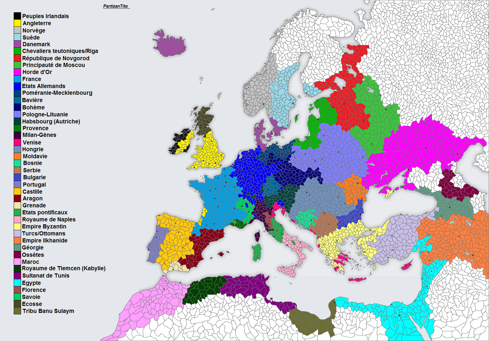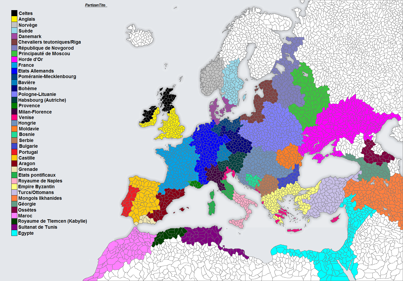 Europe + Afrique du Nord + Proche orient 1300/1400 :