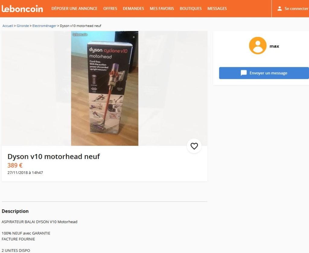 Je viens de le lire, j'ai explosé aussi au "Comme "par hasard, une belle annonce sur LBC d'un certain max, qui vend justement 2 Dyson V10, et justement dans la région du deal... " avec le screen