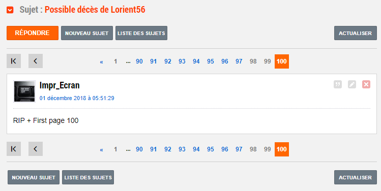 Les khey Lorient était loin d'etre le type le plus sympa du monde mais quand j'imagine la vie horrible qu'il a du avoir jusqu'à sa mort ça me rend triste y devait être tellement seul pour être h24 sur un forum et être obligé de mytho comme ça, que ça serve d'exemple au forumeur de ne pas finir comme ça personne le mérite