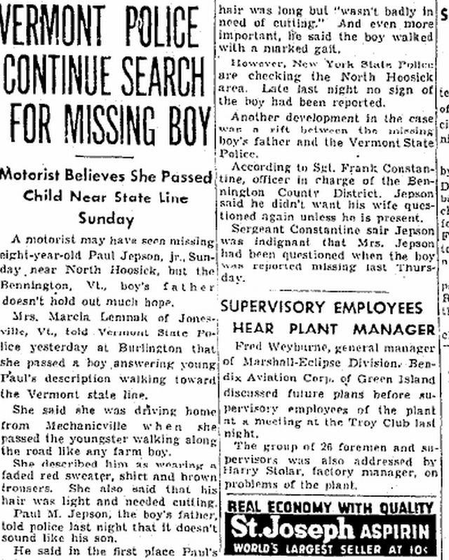 Le 12 octobre 1950, Paul Jepson connaît le même sort que les personnes susmentionnées. Le bambin de 8 ans accompagnait sa mère dans son camion. Alors que cette dernière s’est arrêtée puis a détourné le regard afin de nourrir les cochons de sa ferme, son fils a disparu sans laisser de traces. Il portait un manteau rouge vif qui aurait dû le rendre visible pour n’importe qui, mais aucune équipe de recherche ne l’a retrouvé. Selon la légende, des individus ont remonté des traces qui auraient été laissées par le gamin et qui les ont menés jusqu’à l’autoroute où Paula Welden aurait été portée disparu 4 ans plus tôt.