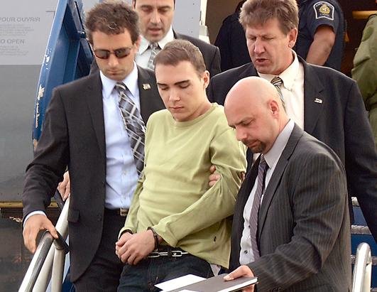 Le 14 juin 2012, la cour juge que les preuves contre Luka Rocco Magnotta sont assez concluantes pour qu'il soit maintenu en prison avant son extradition. Il fait l'objet des cinq chefs d'accusation suivants : « meurtre au premier degré », « outrage à cadavre », « publication de choses obscènes », « envoi par la poste de choses obscènes » et « harcèlement criminel » à l'encontre, entre autres, de Stephen Harper.Magnotta décide de plaider non coupable.Le procureur demande à la cour qu'il soit transféré dans une autre unité de détention en attendant l'extradition.Le 18 juin 2012, le ministère canadien de la Justice confirme les informations de CBC indiquant que Luka Magnotta quitte l'Allemagne pour Montréal sous escorte du SPVM[75]. Il quitte Berlin vers 11 h à bord d'un avion CC-150 Polaris de l'Aviation royale du Canada sous escorte de la police de Montréal, de la Gendarmerie royale du Canada et de l'Agence des services frontaliers du Canada. L'appareil atterrit à l'Aéroport Montréal-Mirabel peu après 19 h.