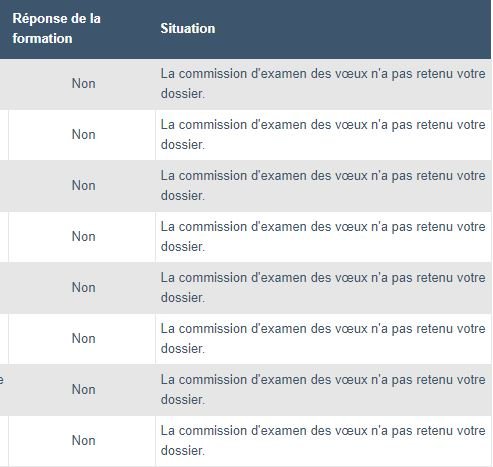 2 voeux, 2 oui, desco depuis la seconde, aucun bulletin scolaire