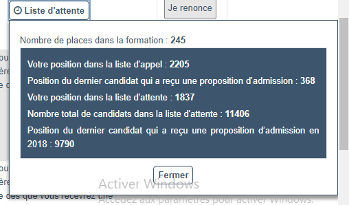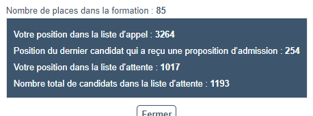 Position du dernier candidat qui a reçu une proposition d’admission en 2018 : 362Bien sûr que ça passe