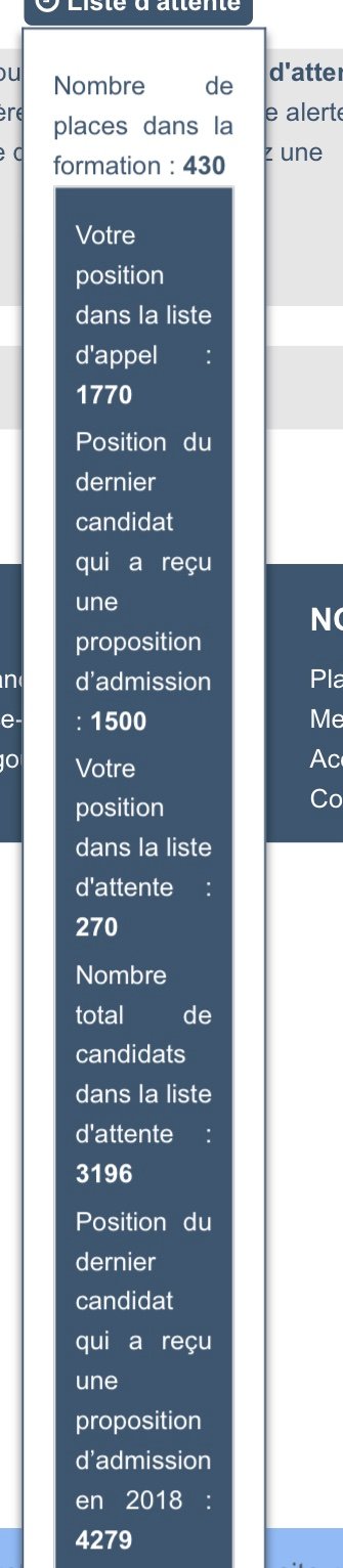 Nombre total de candidats dans la liste d'attente : 6J'ai mes chances ?