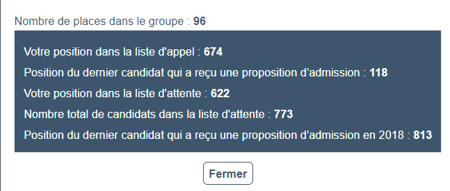 Je pense qu'on va gagner beaucoup de place dans 2-3 jours parce que ceux qui ont reçu une réponse positive ont 2-3 jours pour soit renoncer soit accepter