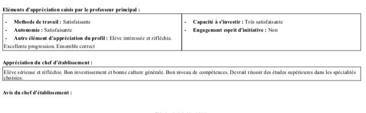 Alors je n’ai marqué que des licences de droit et voici un bout de ma fiche avenir :