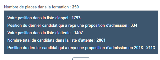 Mais vu qu'il y a relativement peu de personnes qui ont postulées pour ta formation ( la preuve en regardant ta liste d'attente ) et qu'il y a 120 places à pourvoir, il y a peut-être moyen que ça passe au final