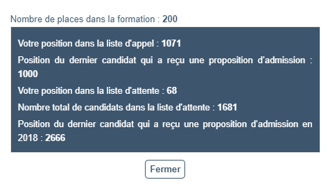 Position du dernier candidat qui a reçu une proposition d’admission : 26