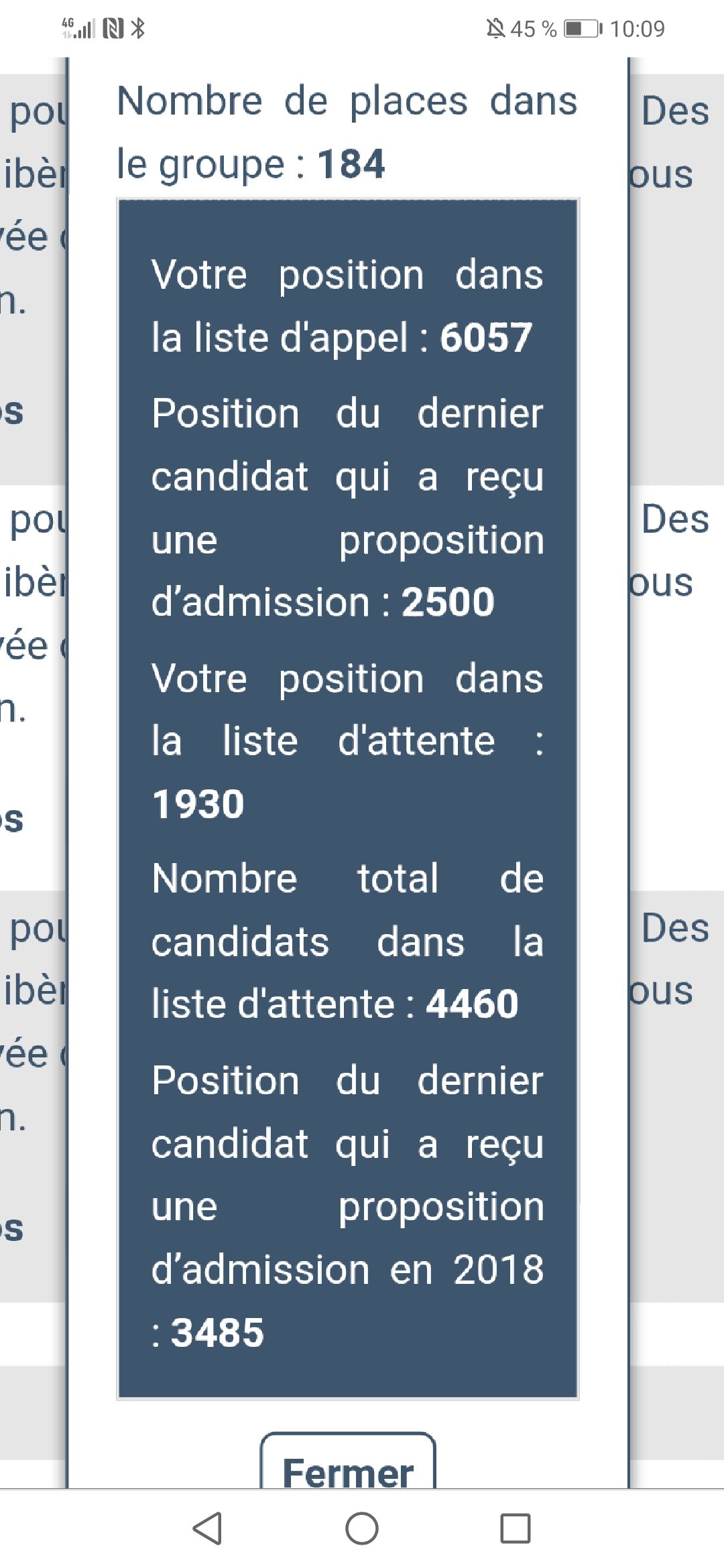 On n'est pas ce capable de comparer sa place dans la file d'attente et le dernier accepté de la session 2018 et ça veut aller dans le supérieur mais je rêve
