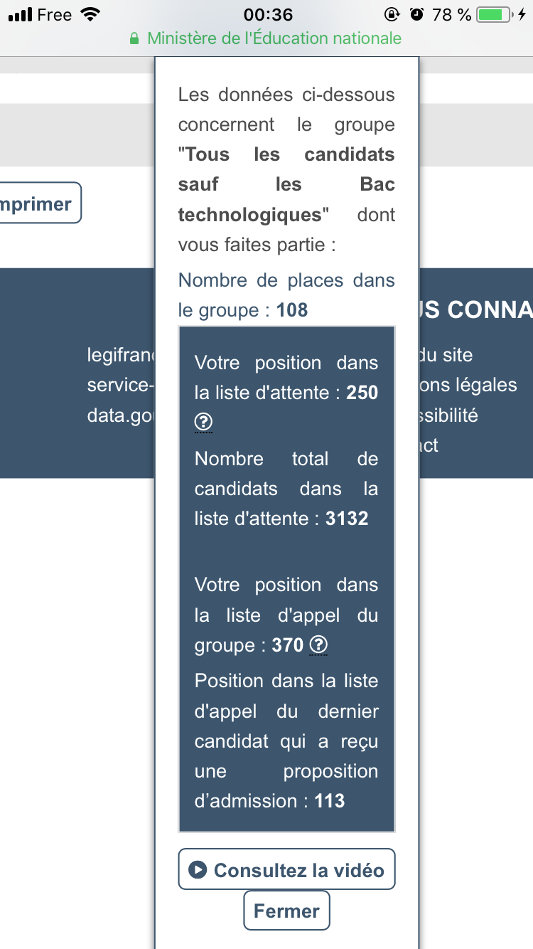 Nombre total de candidats dans la liste d'attente : 555Votre position dans la liste d'appel du groupe : 399