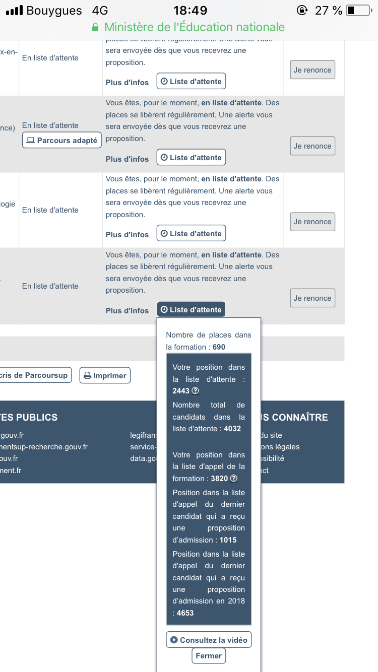 Nombre total de candidats dans la liste d'attente : 1403Votre position dans la liste d'appel du groupe : 648