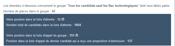 Votre position dans la liste d'appel du groupe : 399