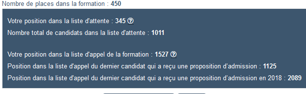 Position dans la liste d'appel du dernier candidat qui a reçu une proposition d’admission en 2018 : 574