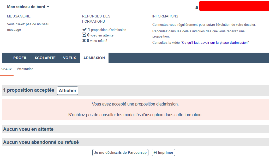 Puis je reviens voir ce matin, je suis en proposition d'admission