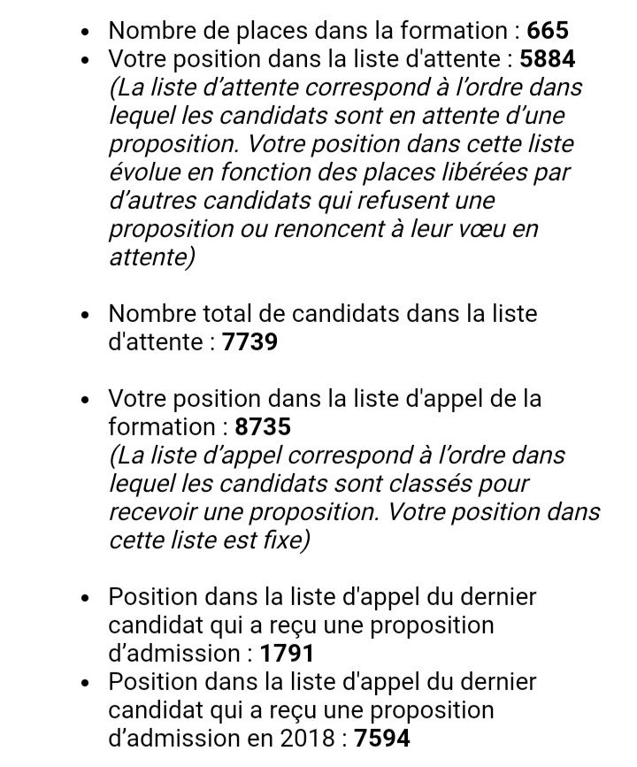Nombre total de candidats dans la liste d'attente : 978Votre position dans la liste d'appel de la formation : 655