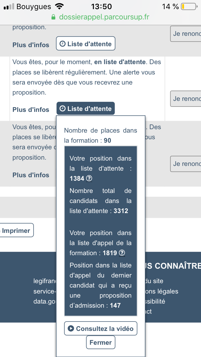 Position dans la liste d'appel du dernier candidat qui a reçu une proposition d’admission en 2018 : 627ca passe les rheys ou pas ?????????????