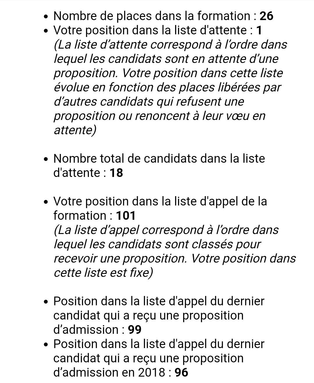Position dans la liste d'appel du dernier candidat qui a reçu une proposition d’admission : 16Putain les khey je viens de comprendre , le dernier candidat qui à reçu un proposition d ´ admission était 14 ème Mercredi et maintenant c’ est le 16 ème .