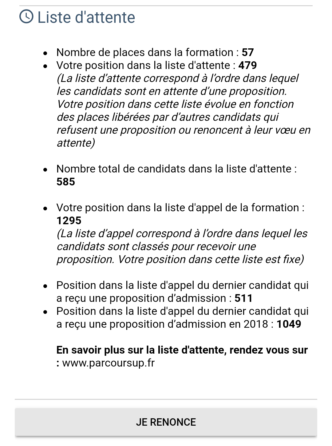 Un avertissement pas précis du tout sa me dit juste que je vais perdre la proposition d'admission . Pour moi c'était juste logique le fait que la proposition allais juste être refuser point barre. Clairement un moyen de dégager les listes. Mais bon normalement je devrait récup mes places sans soucis.