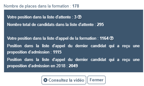 Nombre total de candidats dans la liste d'attente : 698Votre position dans la liste d'appel du groupe : 2288