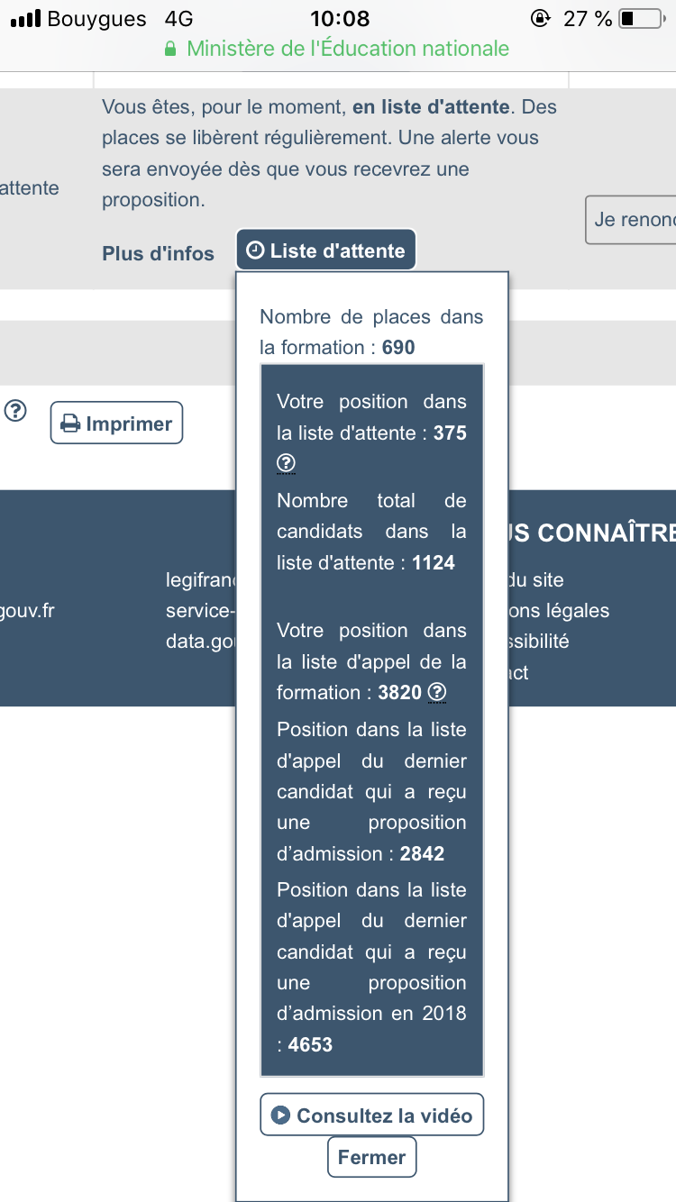 L'année dernière certains ont eu leur place fin Aout tellement c'était buggé et mal foutu (une semaine pour choisir un voeu) là où vous tout est accéléré et fini bien plus tôt. Si déjà là vous stressez, zetes mal barréssauf que là on a jusqu'au 19 juillet pour les admissions. Doonc si on est mal sur la liste d'attente c'est mort