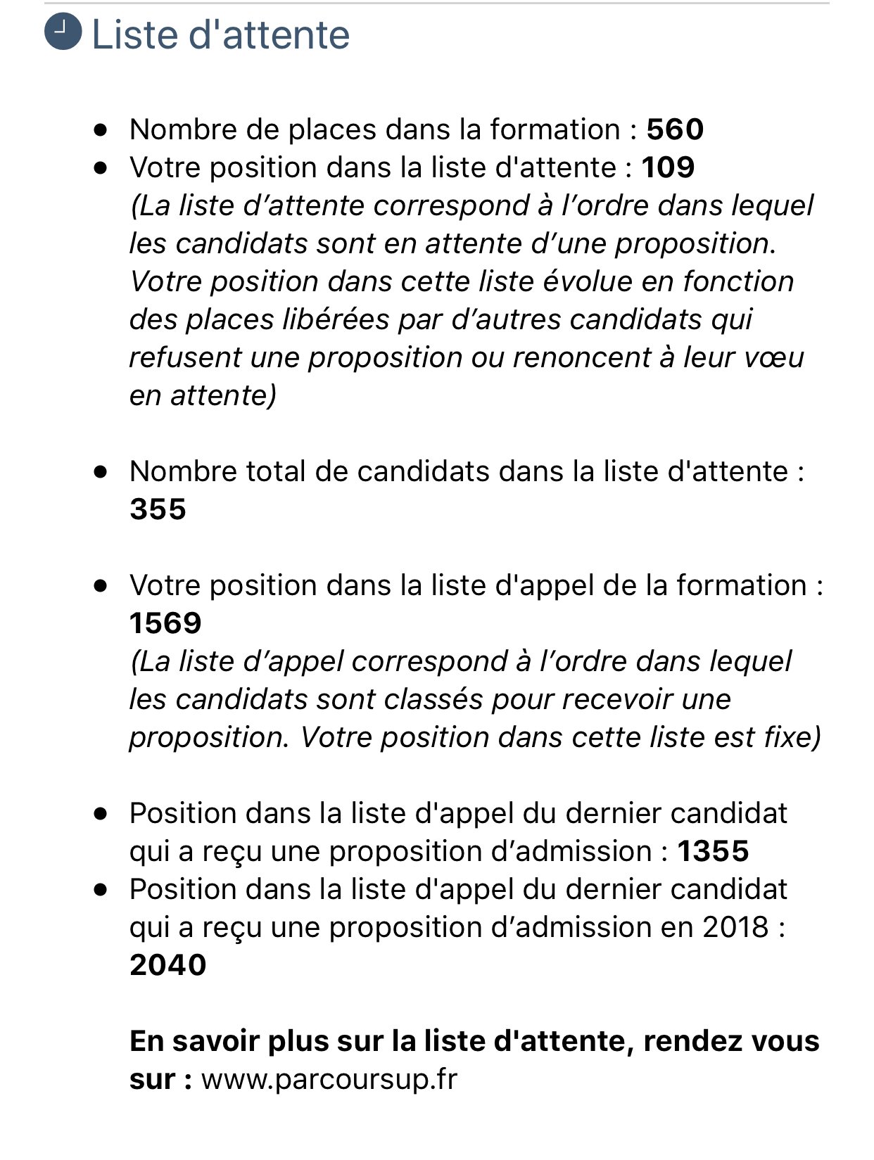 Position dans la liste d'appel du dernier candidat qui a reçu une proposition d’admission en 2018 : 163Ça va être très tendu, par exemple moi je suis 10e pour 37 places alors toi 7e pour 12 places il va te falloir un gros coup de chance