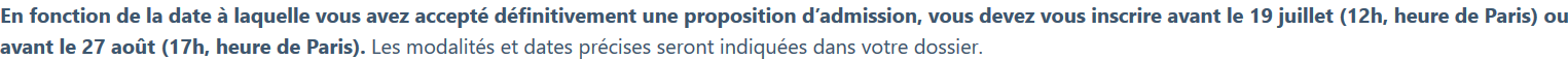 Le 27 août cest la date limite pour finaliser l inscription administrative si tu as accepté définitivement une proposition d admission après le 15 juillet si tu cherches un peu sur internet tu trouvesC'est étrange qu'ils le mettent absolument pas en avant, ils jouent peut être sur ça