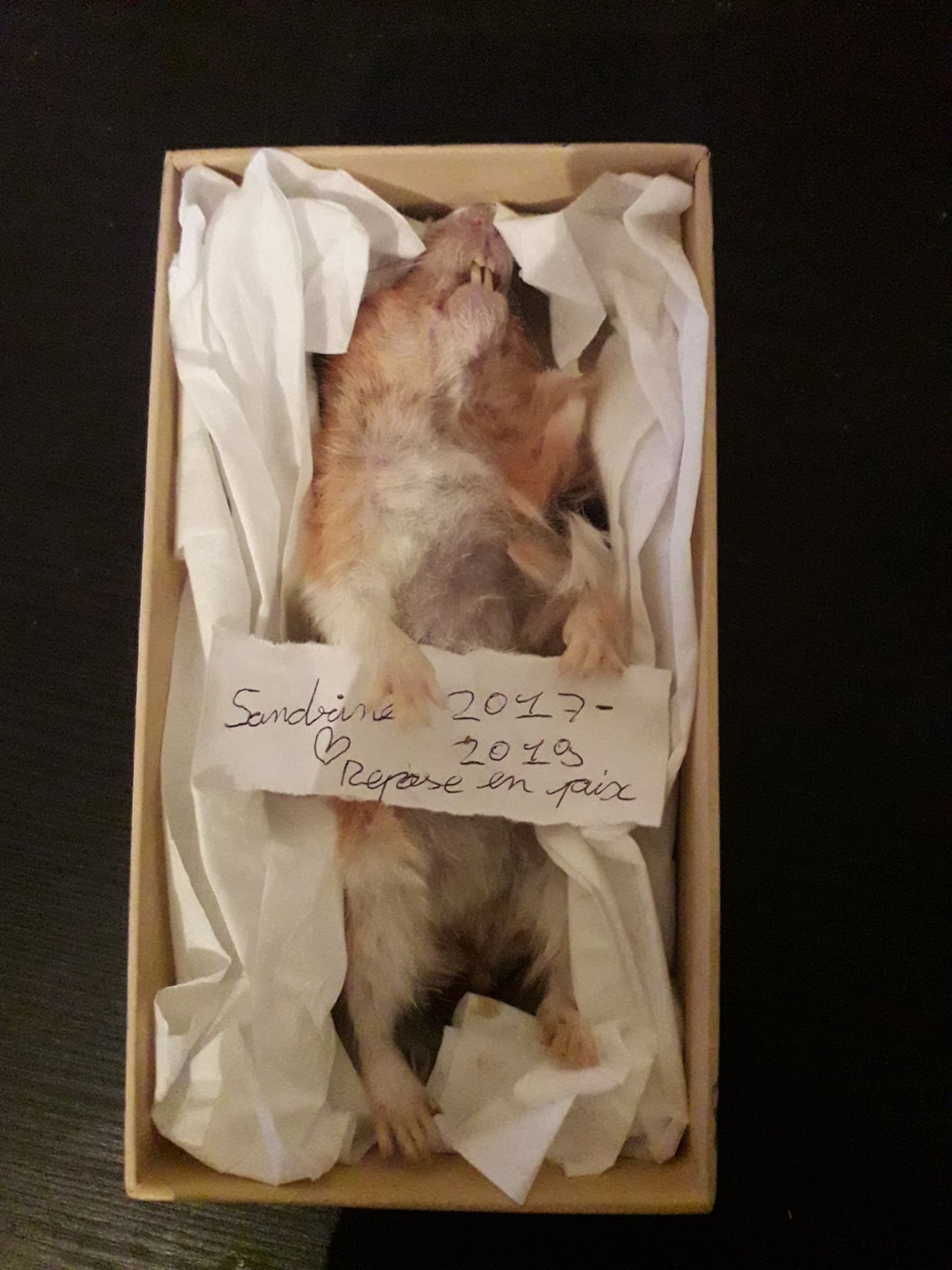 J'espere que tu es au paradis des hamsters et que tu joue avec les autres hamsters (pas comme de ton vivant haha)