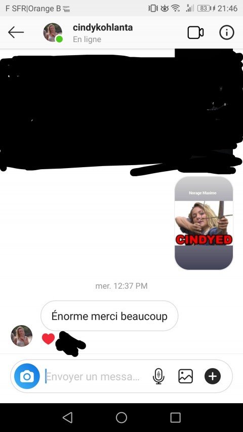 Il faut faire comme avec Cindy, il faut leurs envoyer un sticker d’eux sur leurs insta![]()