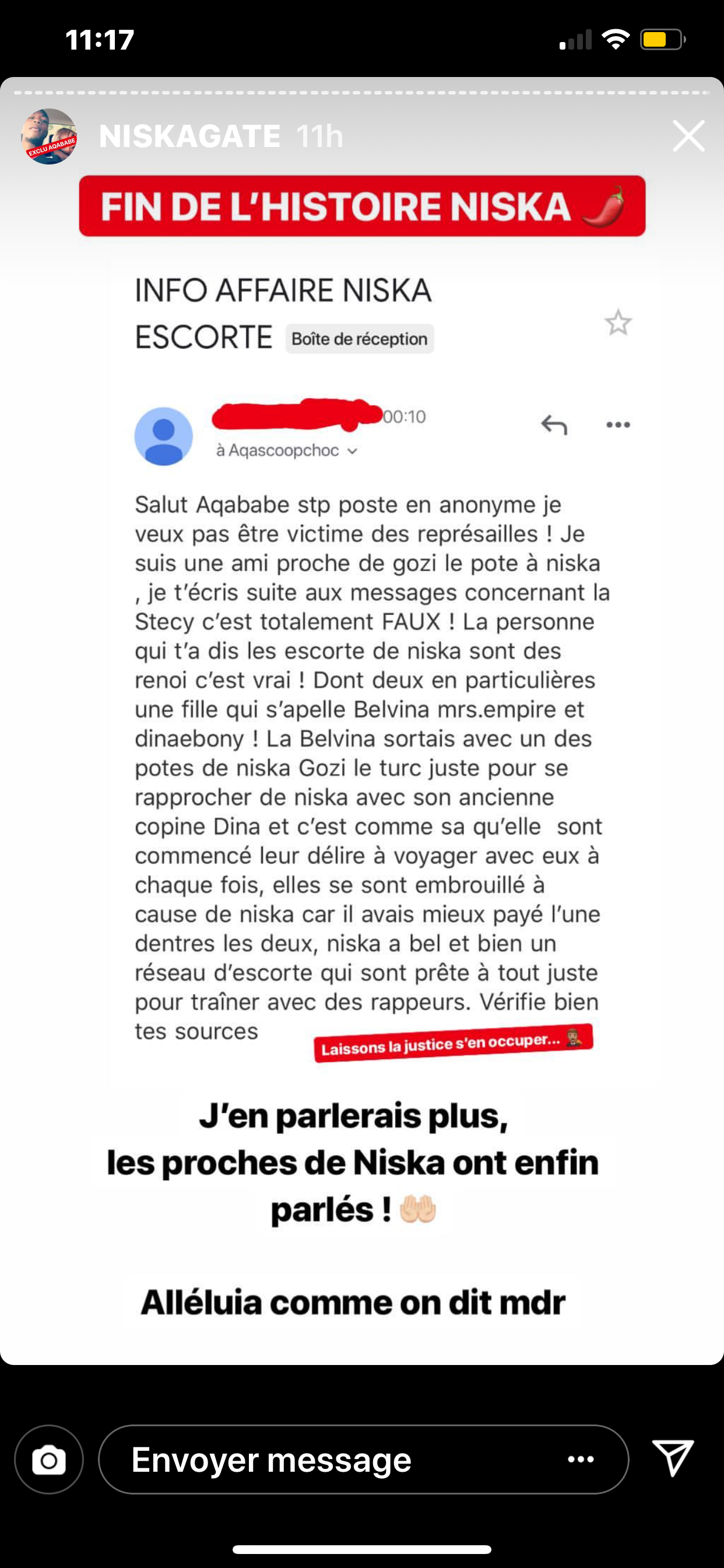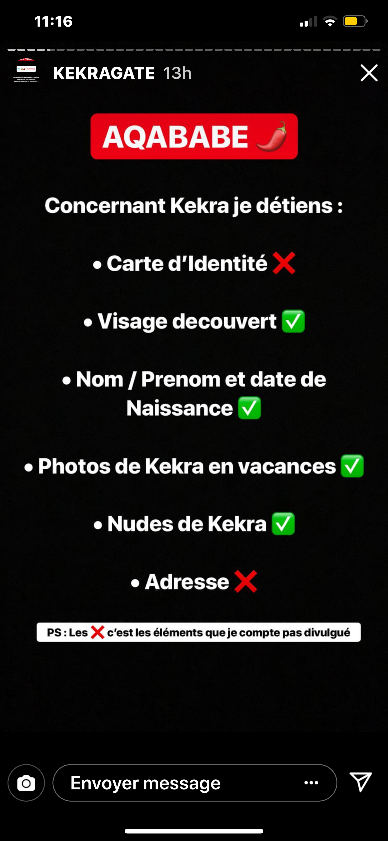 Putain après les nudes de kekra vous lui donnez combien de temps pour survivre?Aqababe a donné son adresse depuis et y’a rien eu. Même Maes après qu’on a su qu’il baisait des trans il a rien fait.
