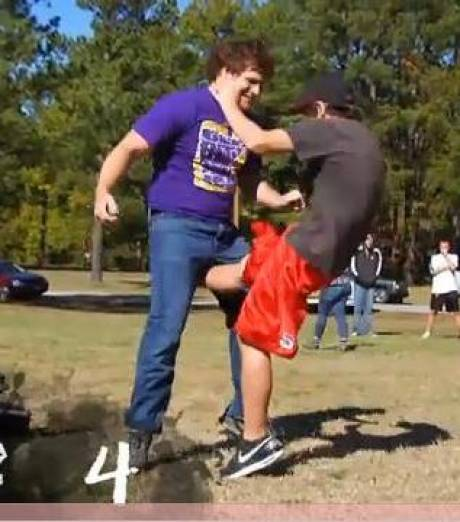 - Louis assène un violent coup de pied dans les valseuses d'Hector alors que celui-ci s'effondre par terre.