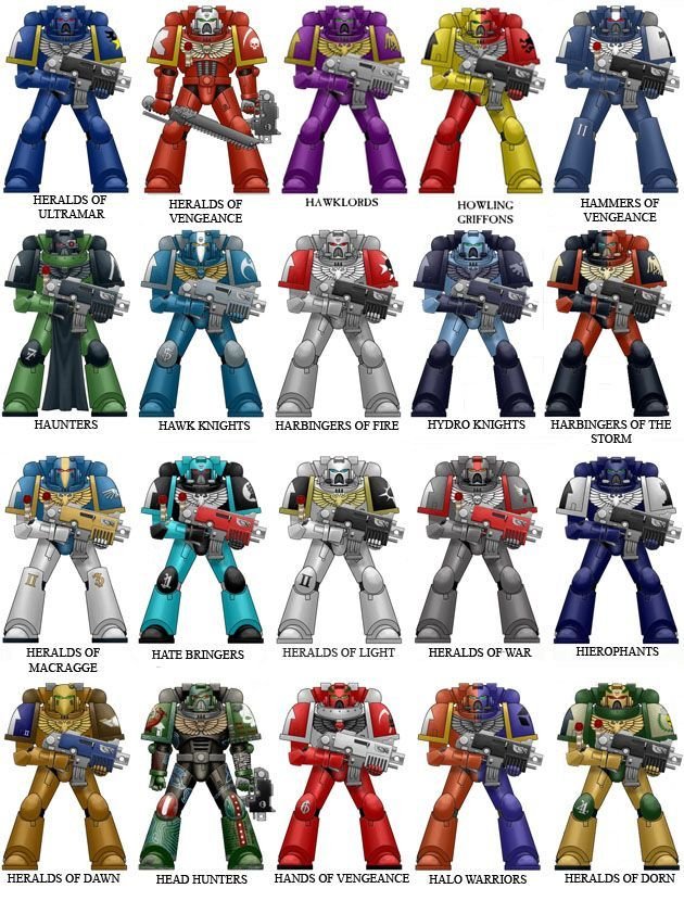 Les kheys expert du fluff, j'ai besoin de vous !J'ai trois Primaris qui traînent et j'ai envie de les peindre dans des livrées non Ultramarinesques (je pensais à la Siver Guard ou aux Imperials Stars) mais quels chapitres des SM ont des Primaris ?