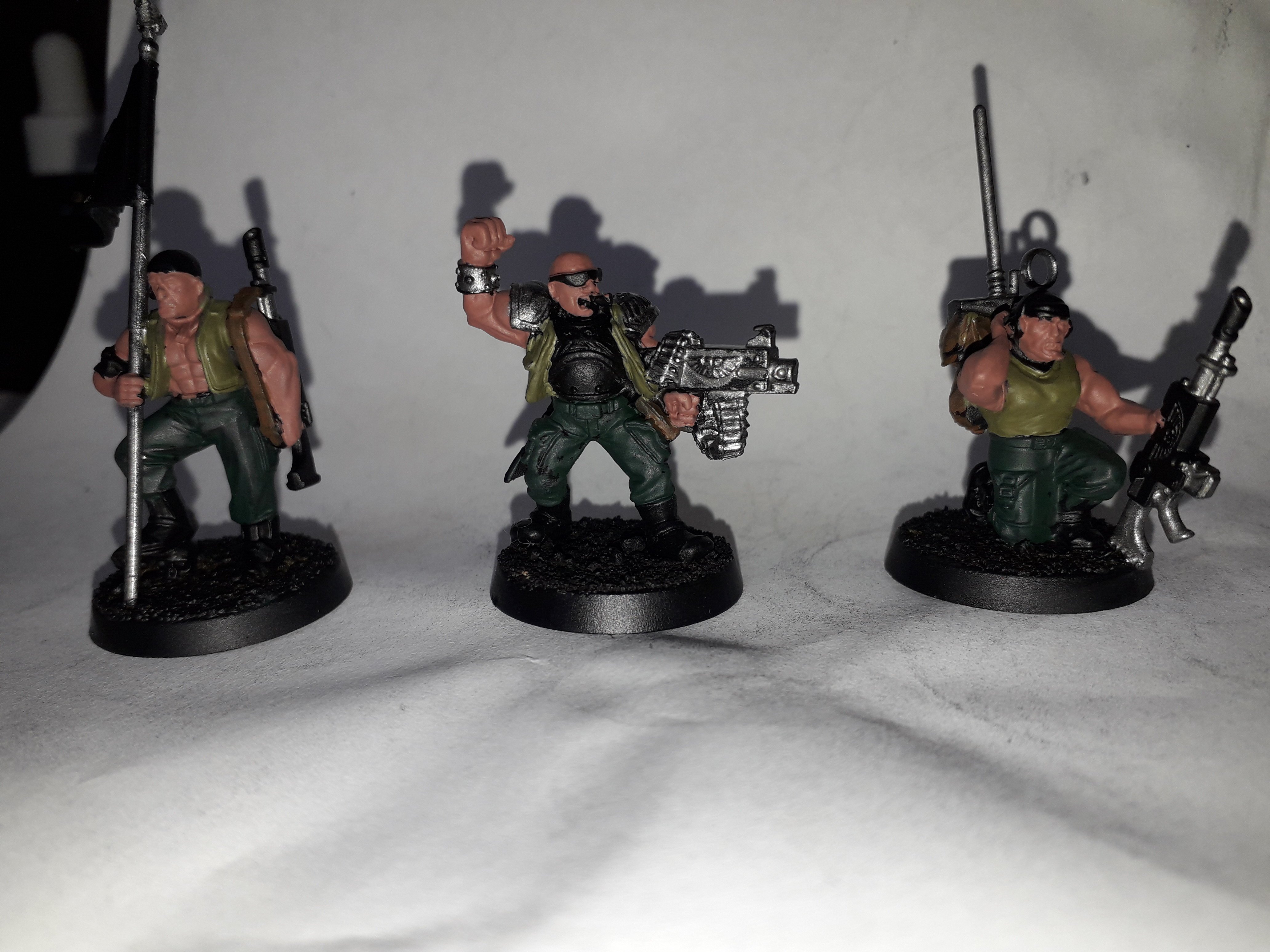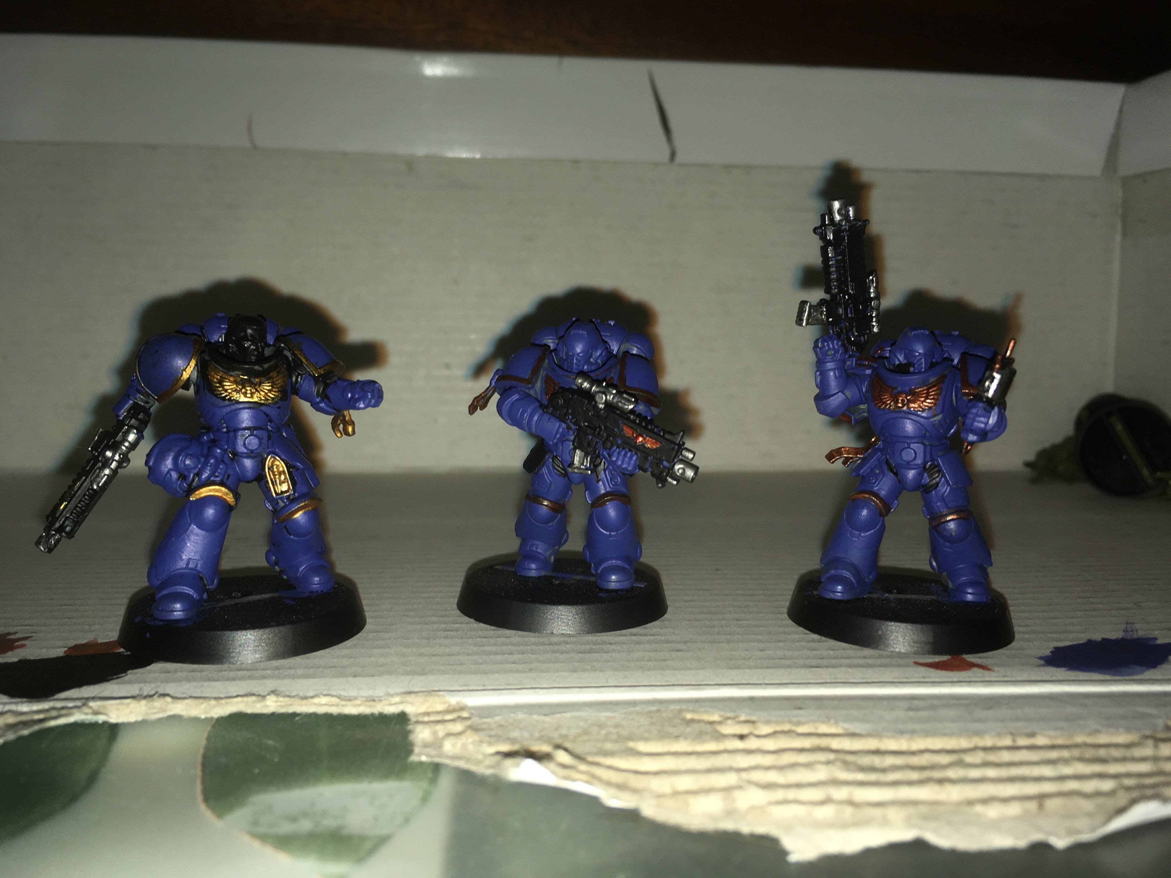 La peinture semble trop épaisse sur tes hommes mais c'est peut être la photo en tout cas c'est relativement propre ça déborde pas c’est très bien pour débuter