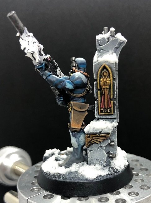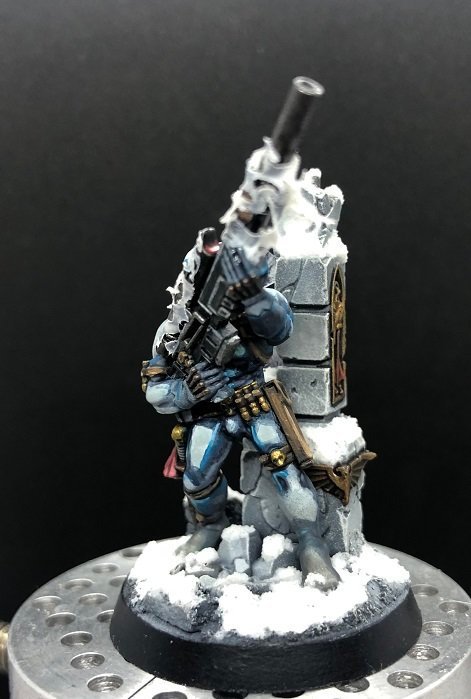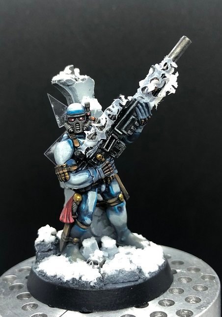 Valendel ==> perso base rhinox hide et lavis nuln oil et éclaircissement au layer Ghorthor brown et un mélange plus clair sur les arrêtes.