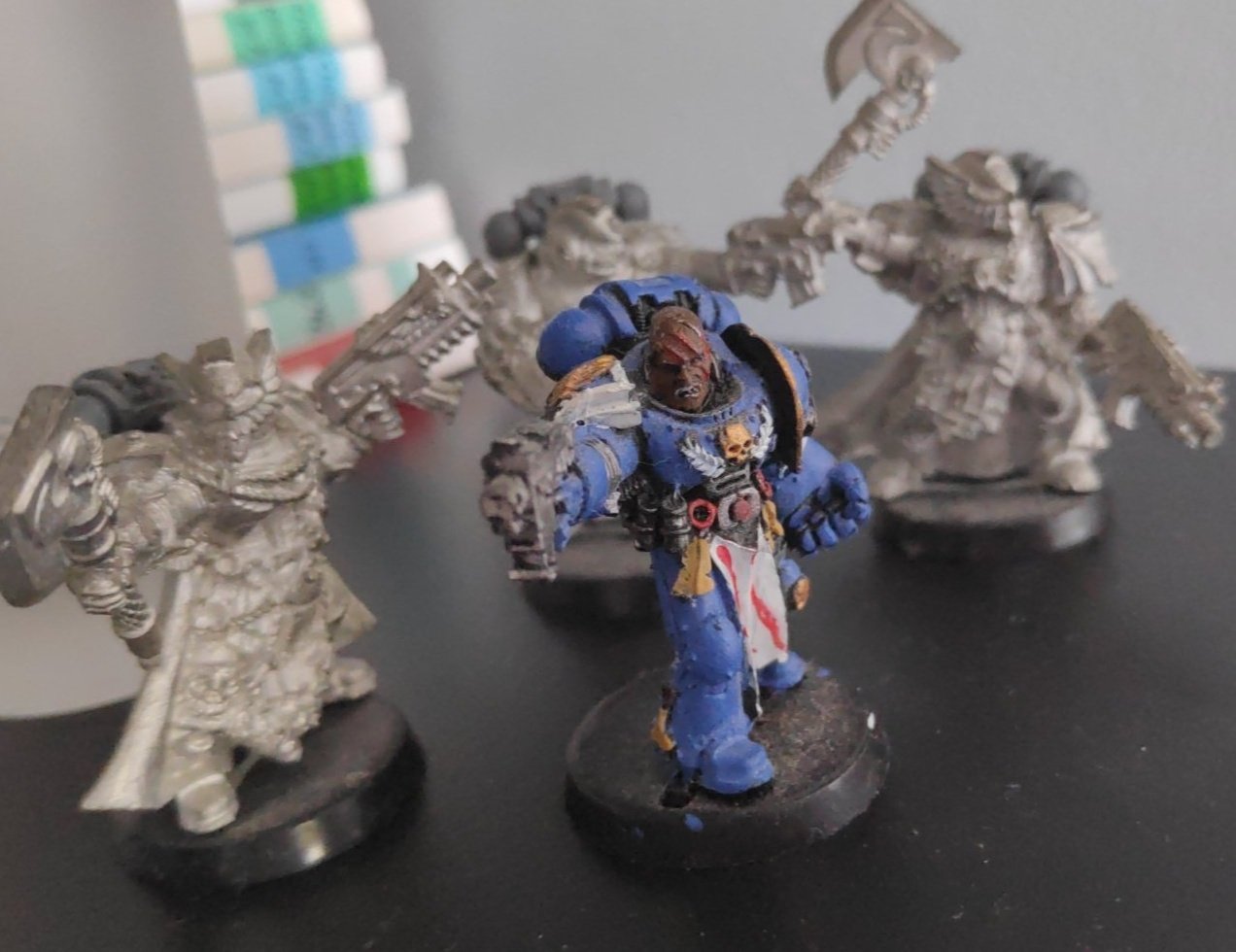 J'ai encore mes black templars V4 de mes 11 ans dans mon placard, une peinture dégueulasse évidemmentL'époque (heureusement que c'est fini je crois) où tu pouvais mettre un étendard sur le pack dorsal du sergent d'escouade