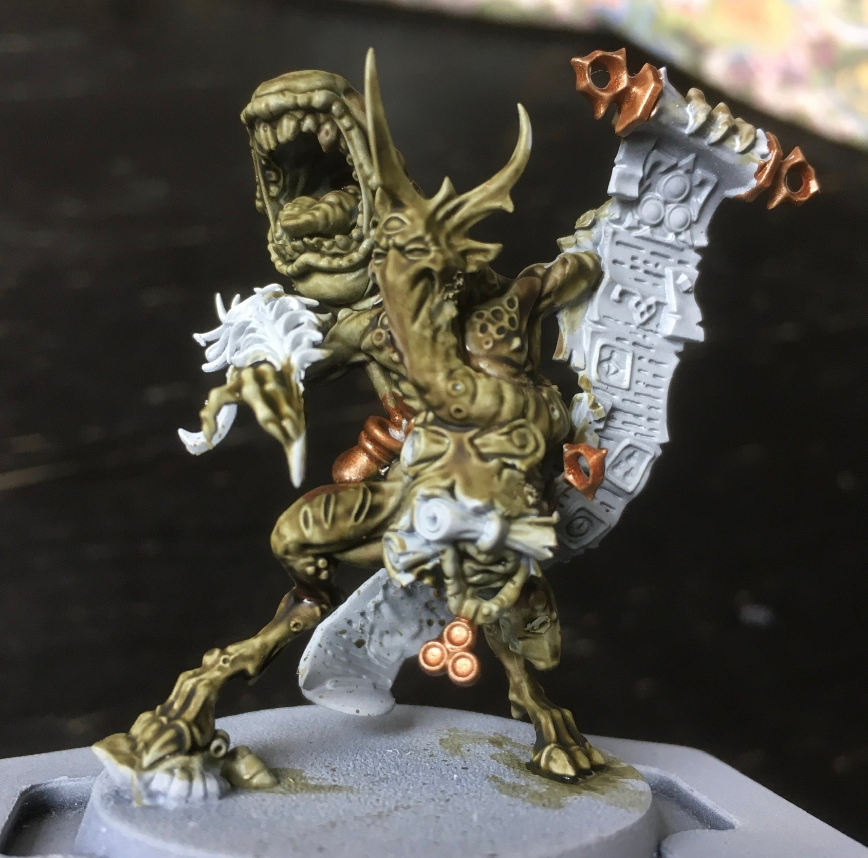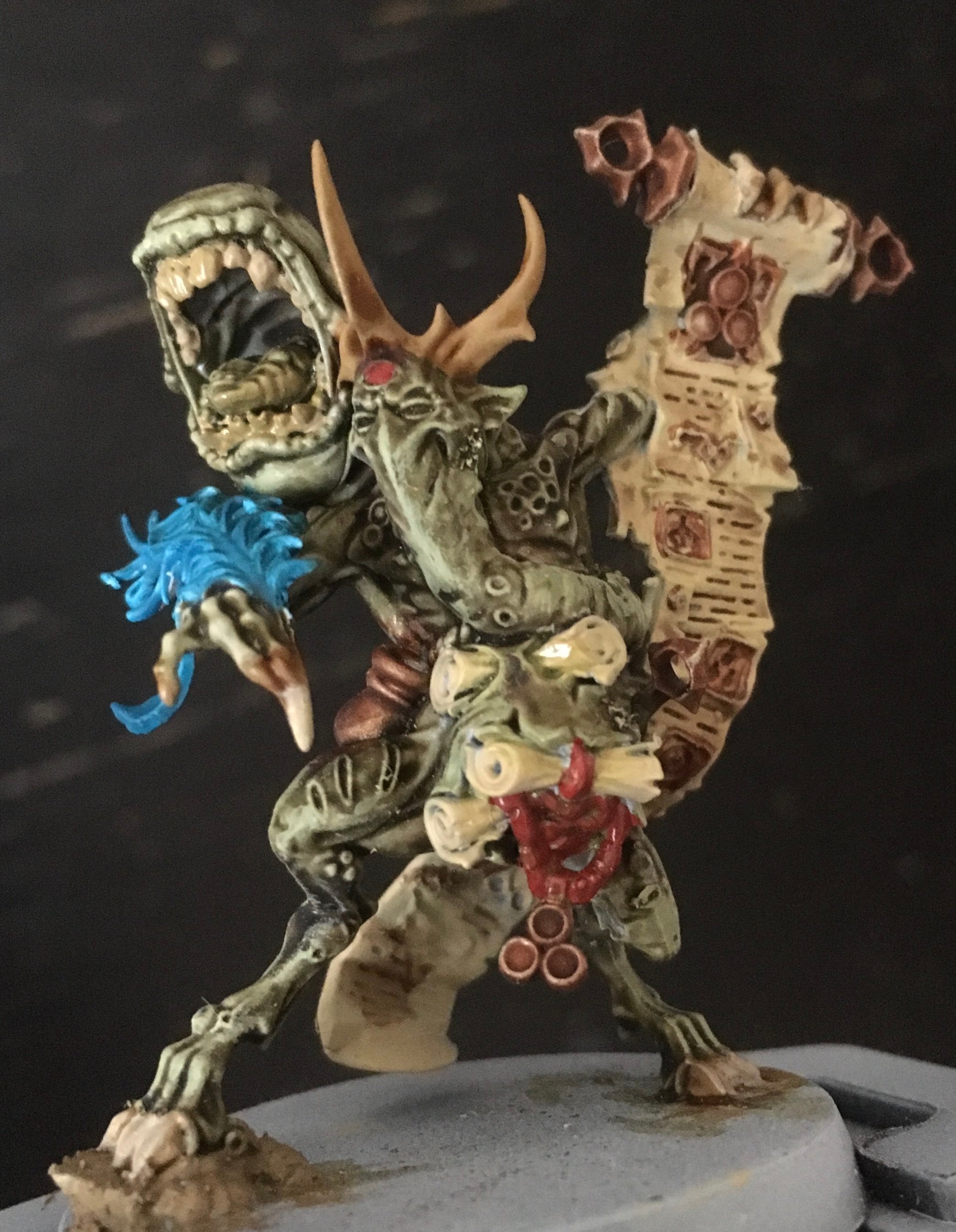J’ai suivi le tuto de Duncan « Nurgle Flesh » pour la faire, uniquement avec des shades.Mes pinceaux meurent en serie là, je dois améliorer mon entretien, mais vous auriez des autres marques que Citadel ? J’ai l’impression qu’entre-tous eux meurent vite