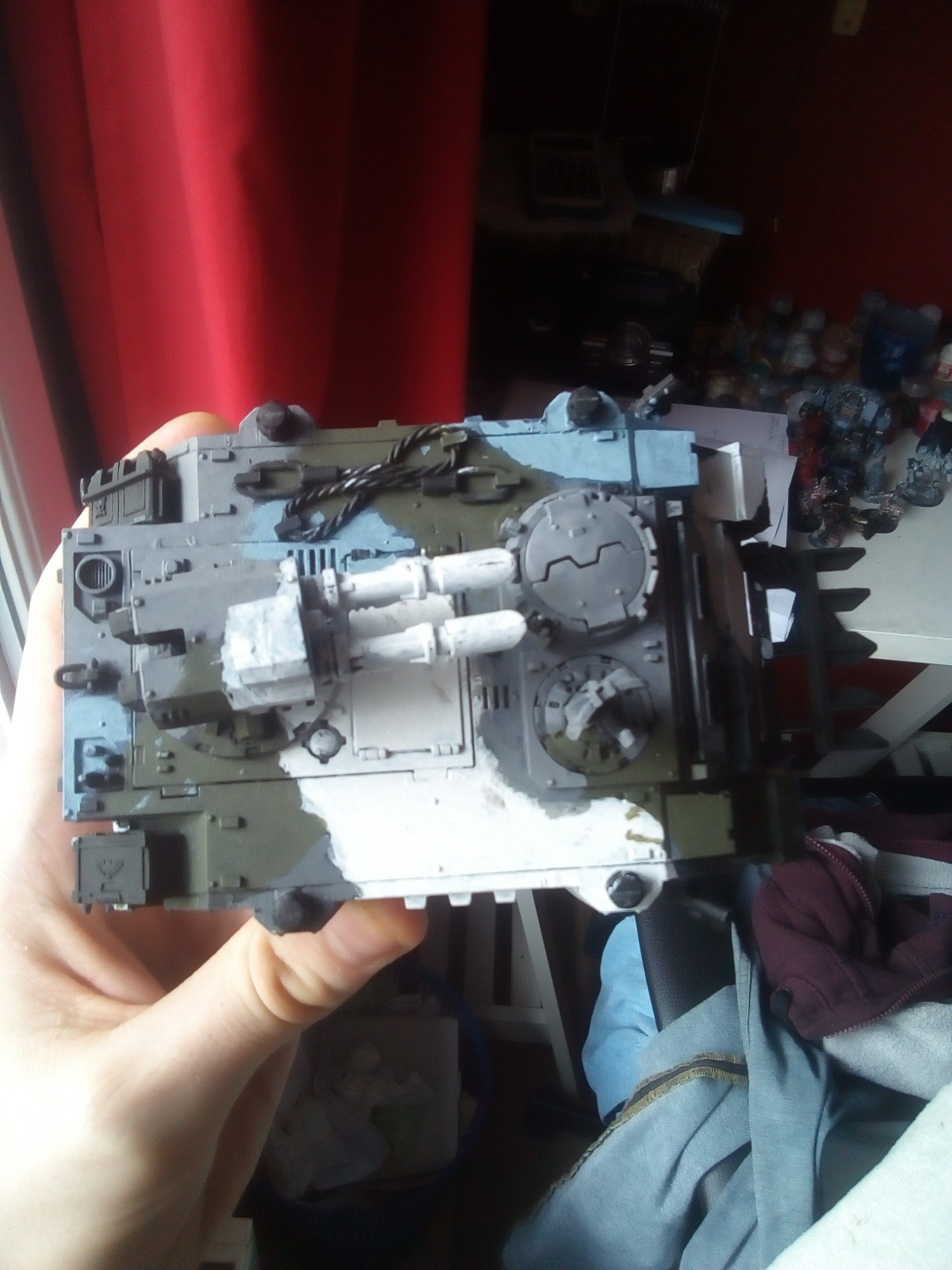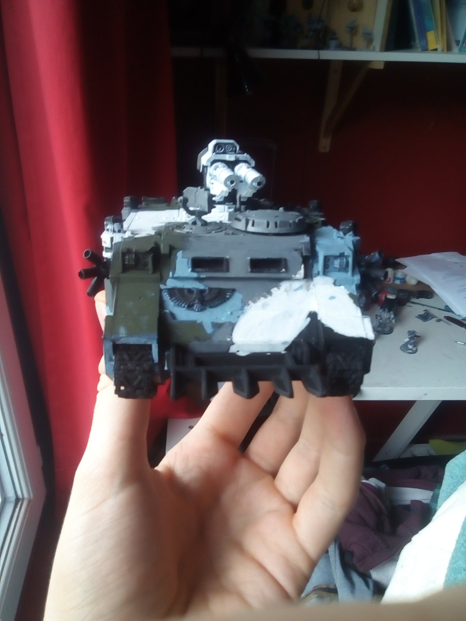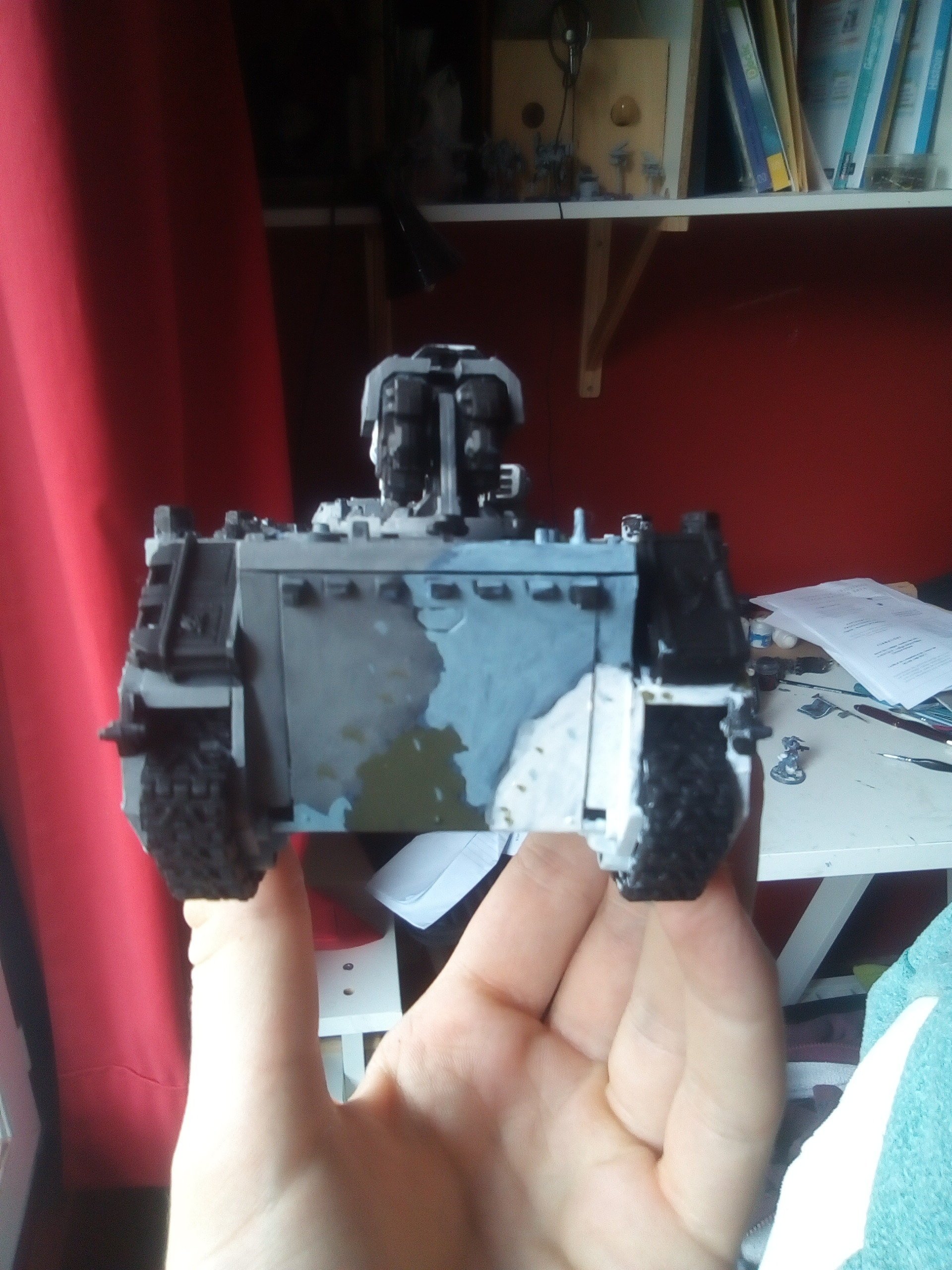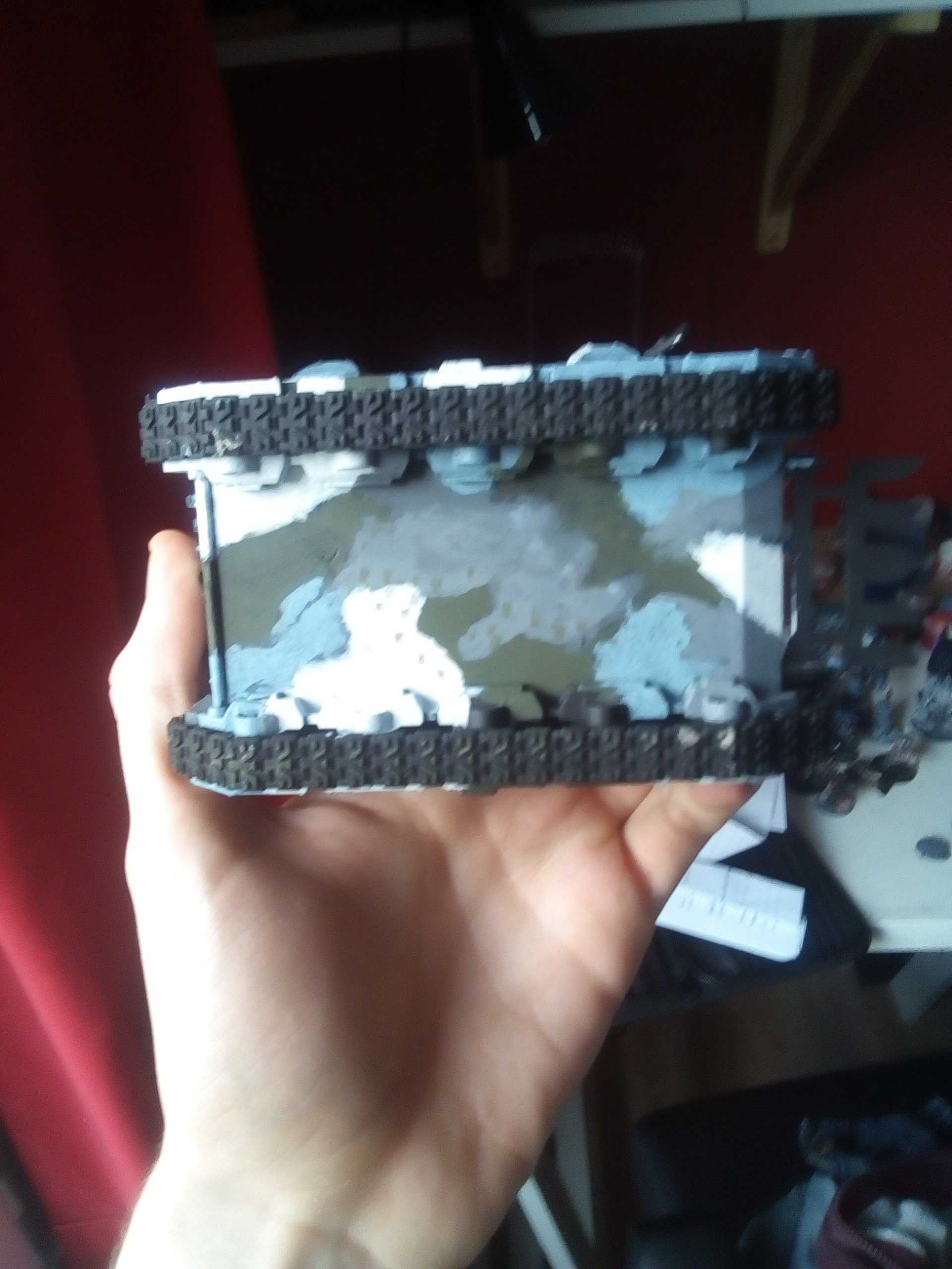 J'ai d'abord appliqué un camouflage dans le style FT-17 de la première guerre et un léger voile blanc pour figurer une fin d'hiver ou un camouflage hâtif avec de la chaux.Ma boite à lumière étant relativement petite j'ai opté pour les photos en extérieur.
