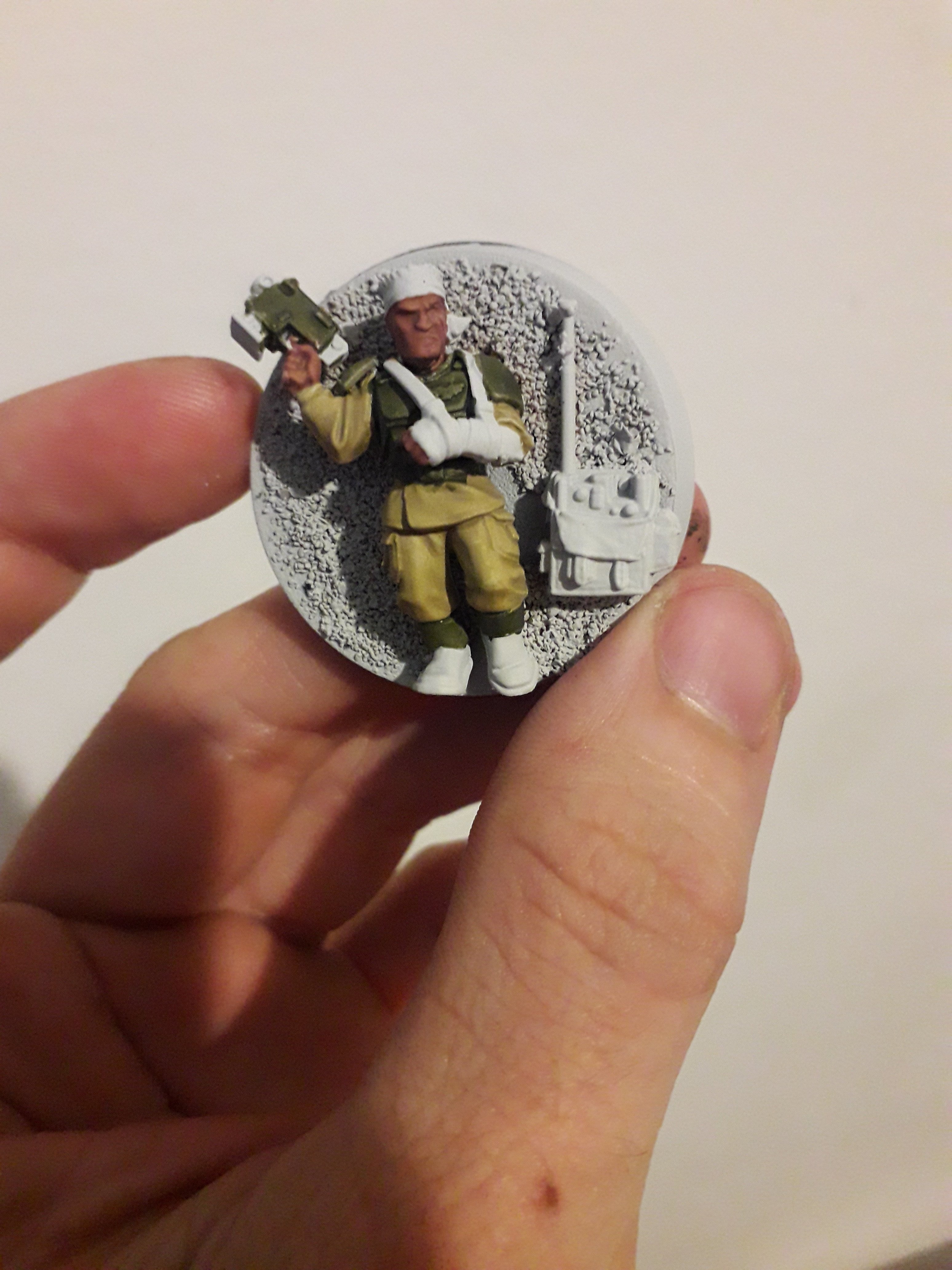 Te rabaisse pas je vois pas l’intérêt surtout que c'est bien fait, c’est précis alors certes c'est pas terminé mais la dilution est excellente pas de débordement de la chair sur le fusil ou l'uniforme, tu fais même une tentative de conversion avec le soldat blessé que j'aime beaucoup ça ferait un bon pion objectif avec la radio d'ailleurs ...