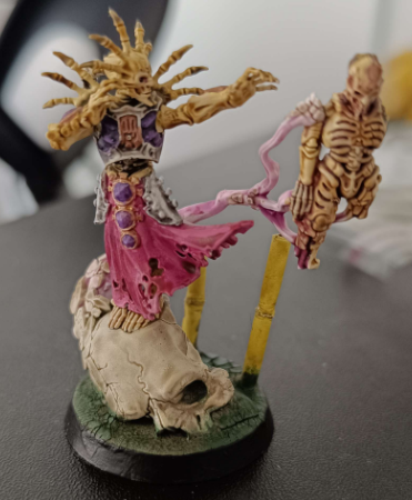 Je voulais un effet forêt/jungle et c'est plutôt réussi d'après ce qu'on m'a dit, sur mes figurines un peu plus grandes je vais faire des bambous comme sur ce Mortisan que j'ai fini la semaine dernière![]()