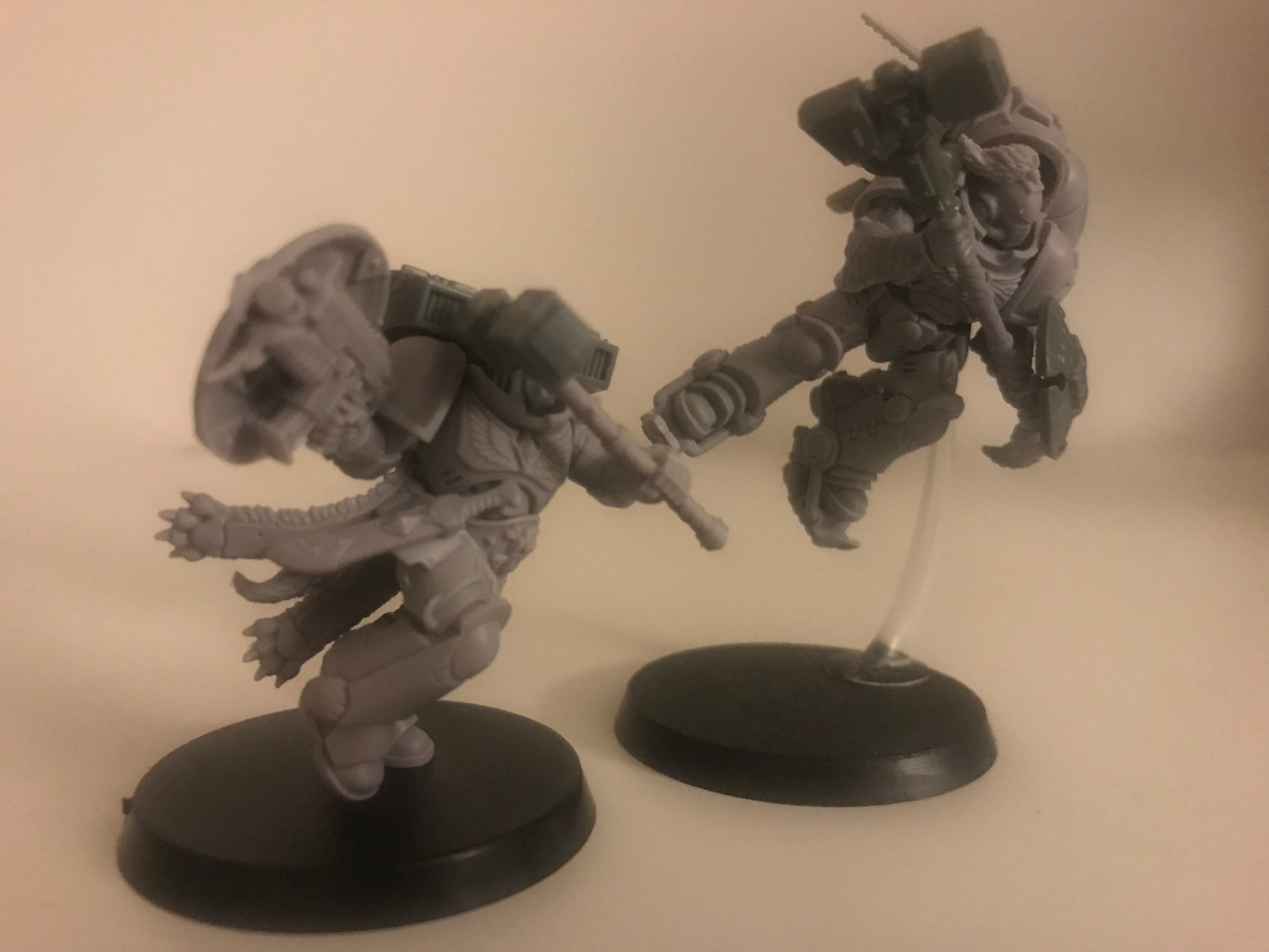 Voilà deux kitbash de Seigneurs Loup réacteurs/marteaux/boucliersIls sont en primaris mais seront joués en marines normaux évidemment. Je suis en train de me monter une XIIIe Compagnie mais en Primaris.