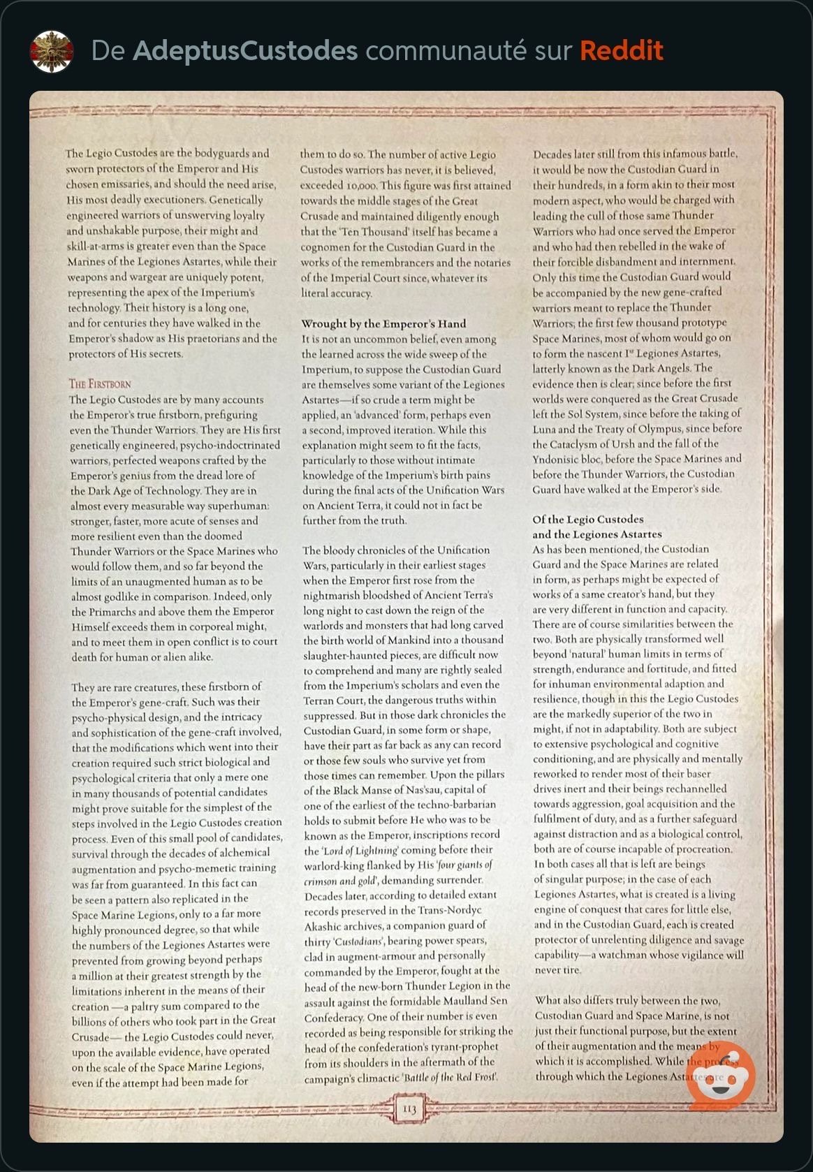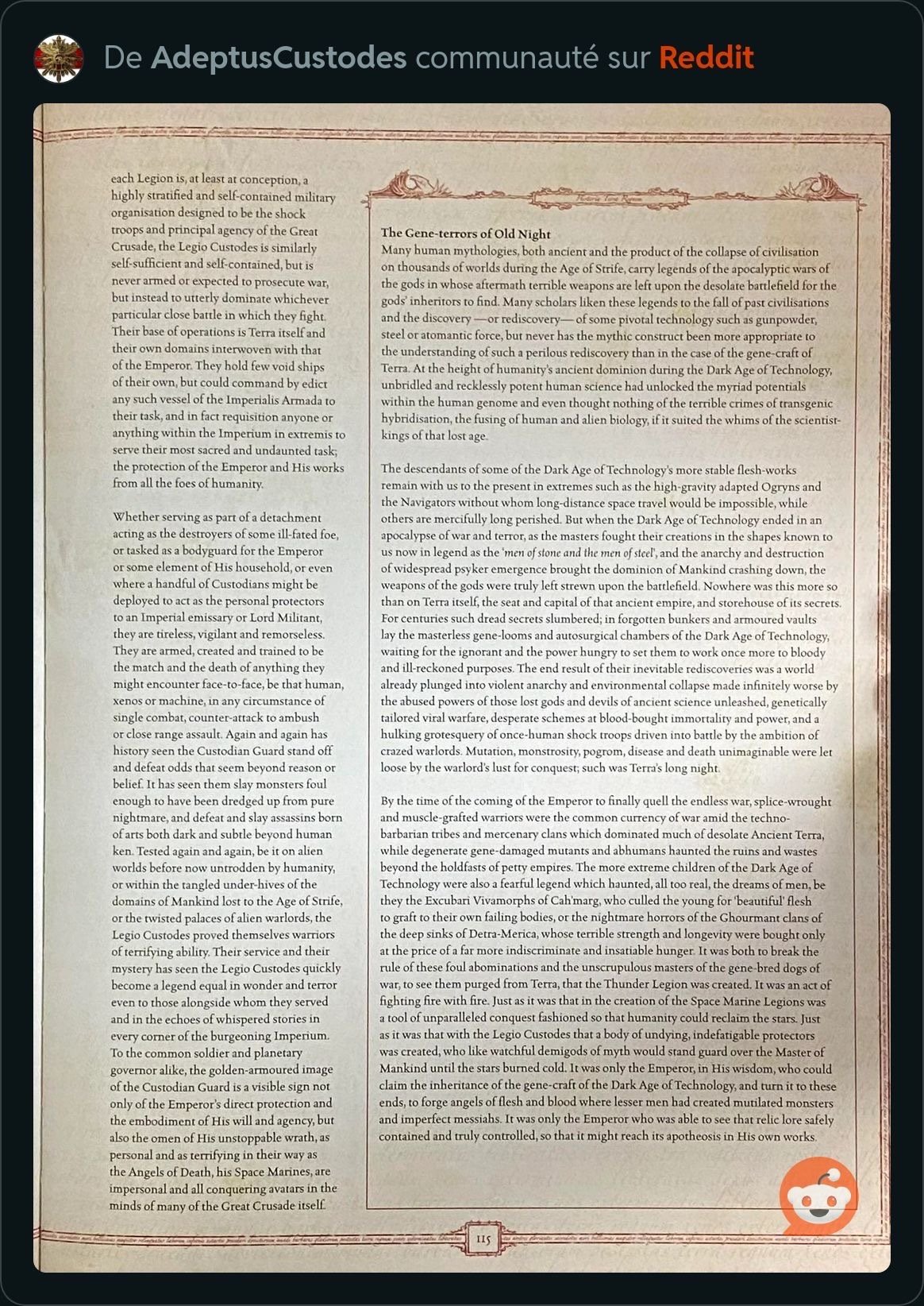 80% du lore est un retcon.ADB a crée le lore custodes a ba d'accord toujours plus dans l'exagération