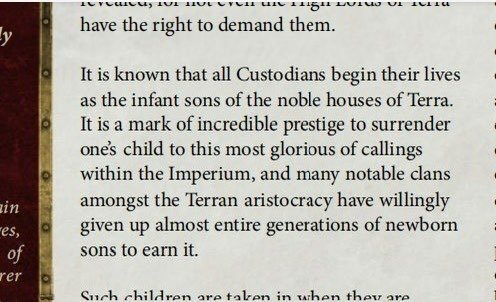 > ils ont RETCON le fait que les custodes n'etaient pris que chez les FILS de nobles