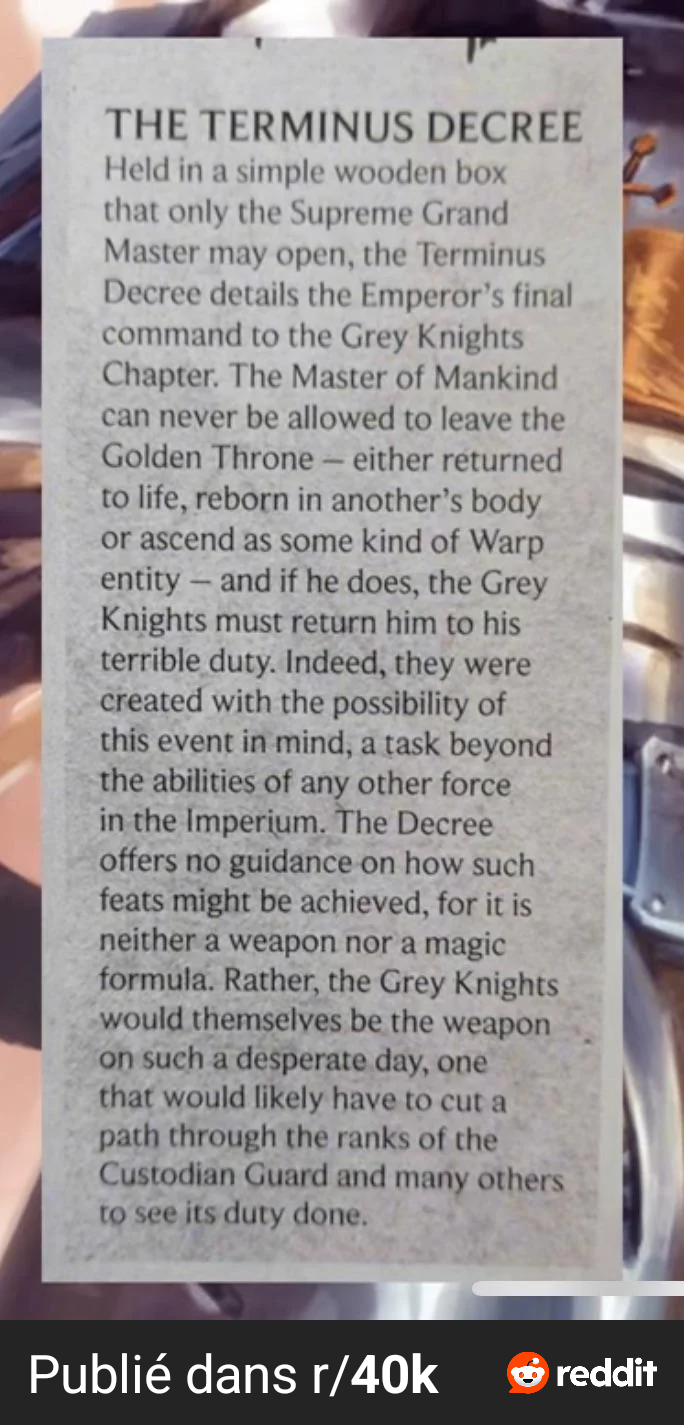 Votre avis sur le décret Terminus du codex chevalier gris ?![]()