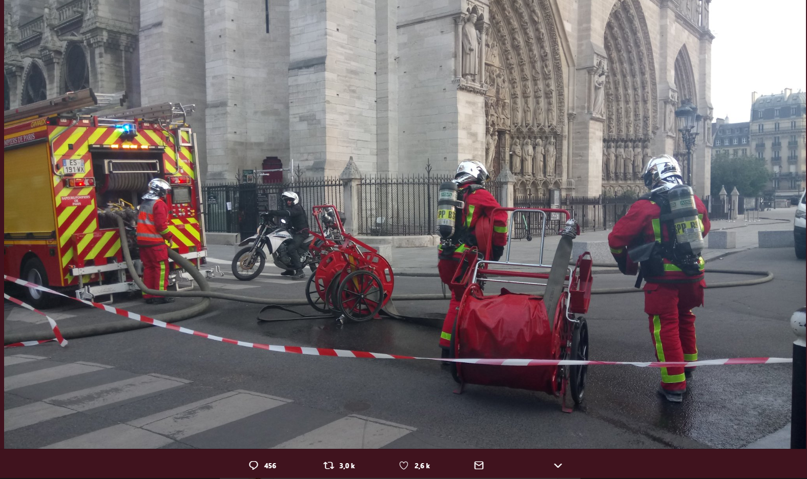 Les pompiers qui n'ont qu'un tuyau d'arrosage pour lutter contre l'incendie d'un des monuments les plus important du pays voir du monde, ce pays