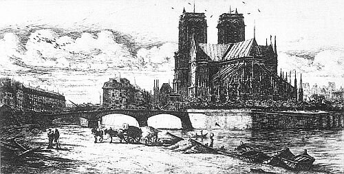 Ou alors simplement reprendre une photo de la cathédrale ou alors une gravure historique. Elles sont toutes magnifiques d'ailleurs. Et il me semble que dans certains éditions de Notre-Dame de Paris il y avait de belles illustrations à l'encre. Comme dans les livres de Jules Verne.