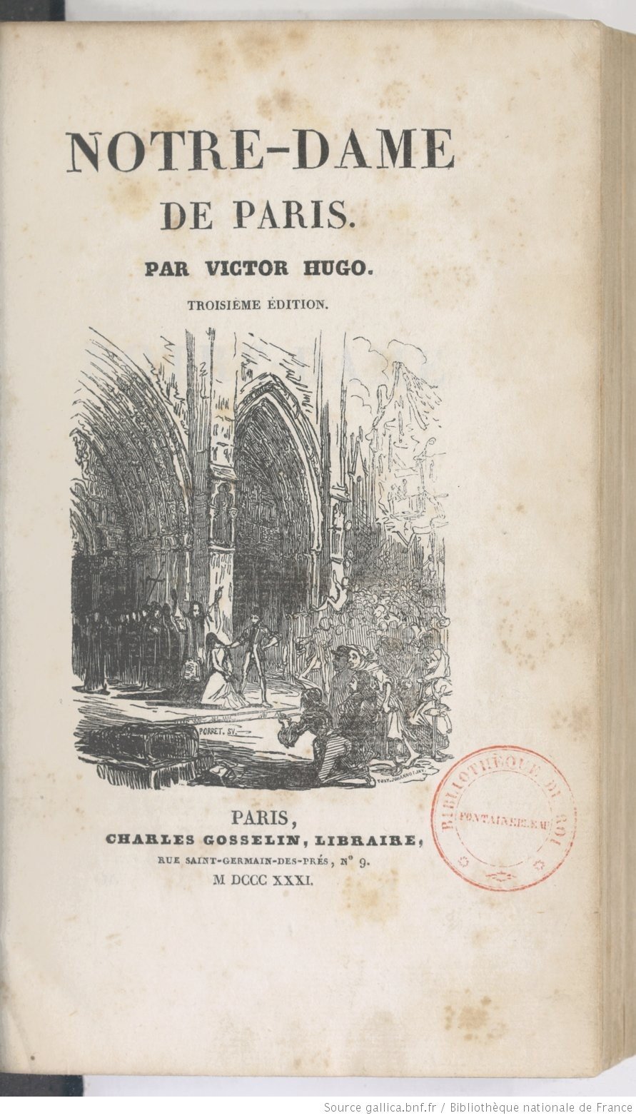 Le Bossu de Notre-Dame oui. Le roman de V. Hugo s'appelle simplement Notre-Dame de Paris. Et ça fait chier de voir partout des images du film de Disney.