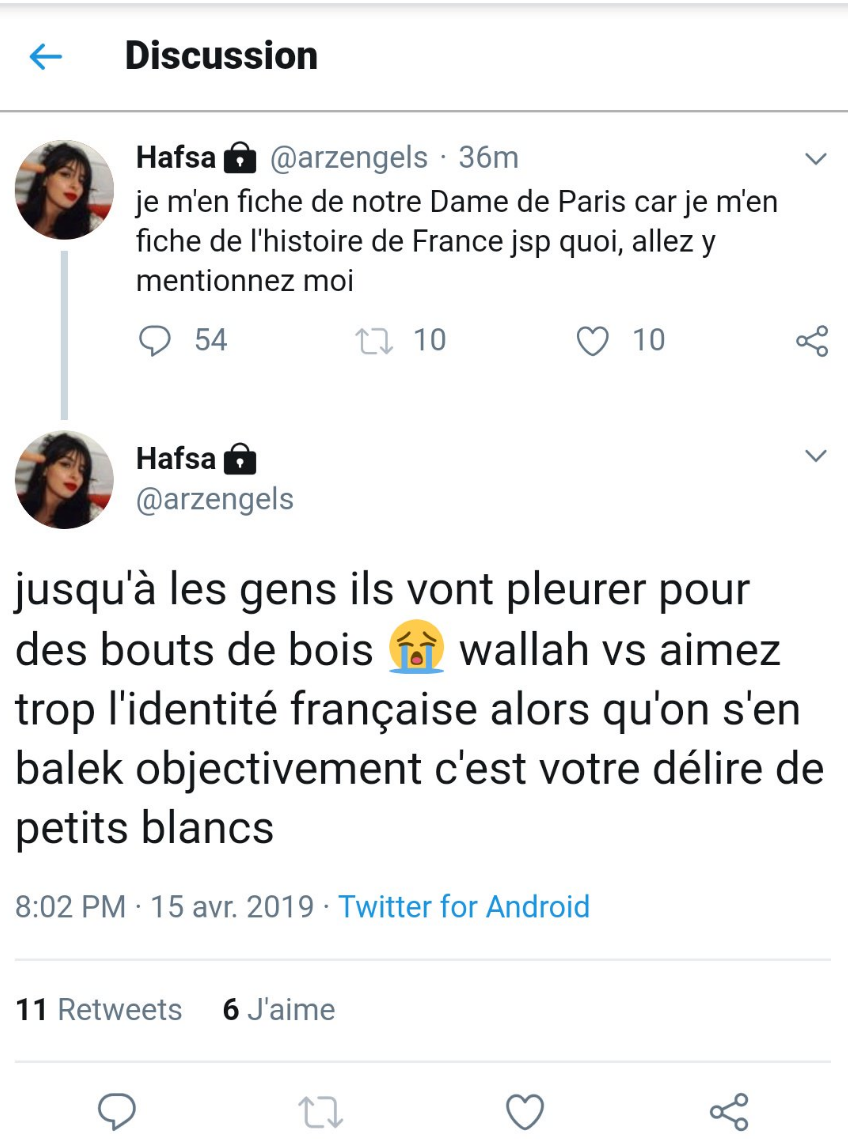 Résumé de ce qu'a dit la fille de L'UNEF ?Elle se réjouissait de l'incendie et se moquait des "blancs en larmes".
