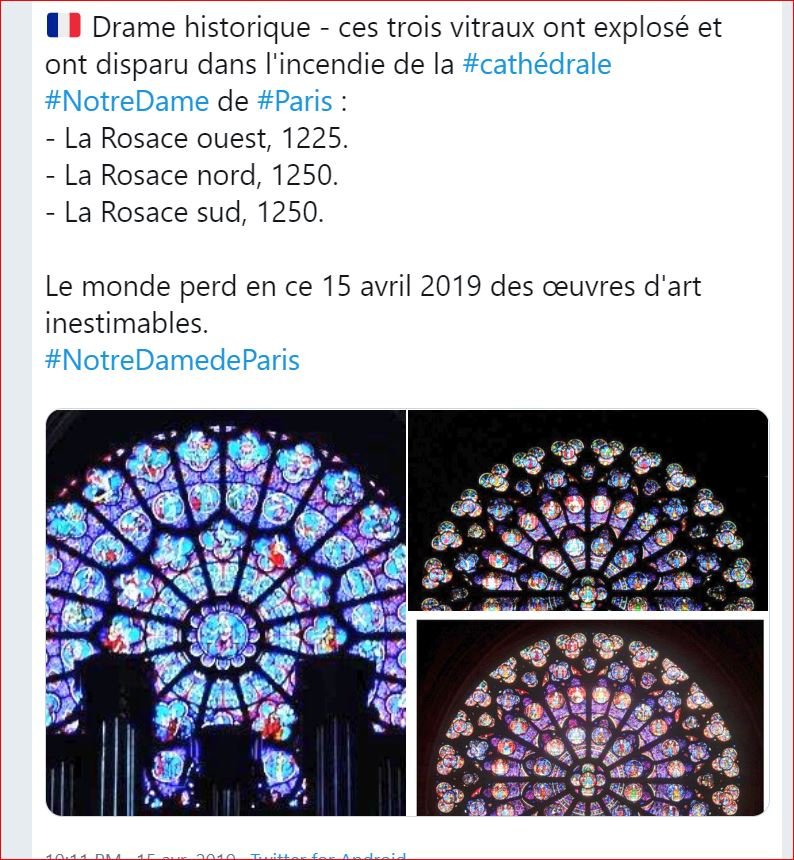 Fake, ce matin le recteur a dit que les vitraux touchés sont juste ceux qui datent du 19eme siècle, et même pas tous. Ceux du 13eme siècle sont intacts
