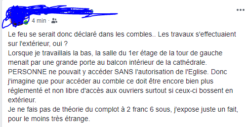 Post d'une amie sur facebook ayant bosser à notre dame.