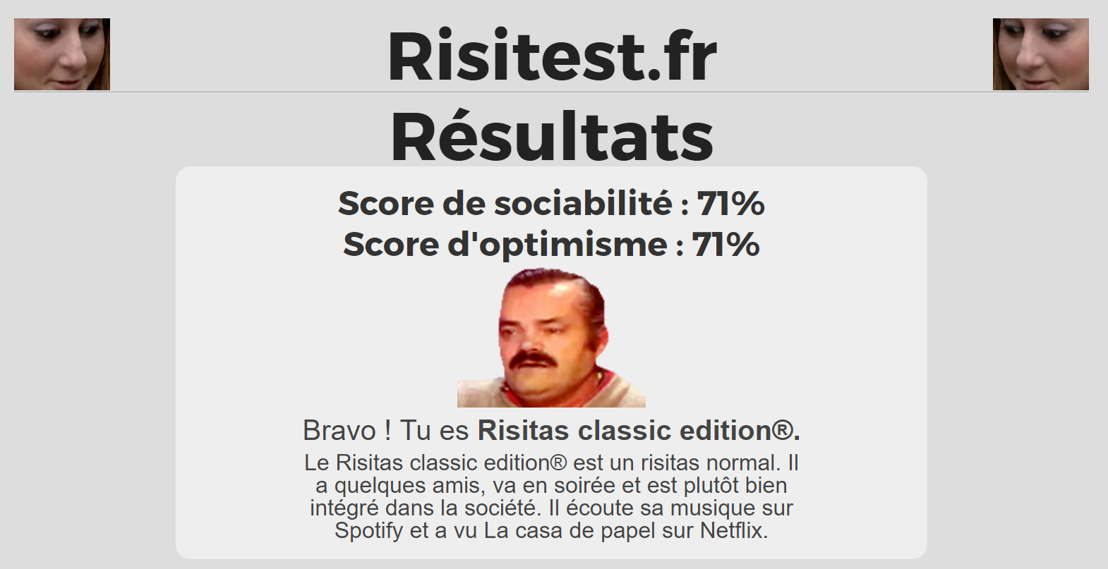 Le Risitas classic edition® est un risitas normal. Il a quelques amis, va en soirée et est plutôt bien intégré dans la société. Il écoute sa musique sur Spotify et a vu La casa de papel sur Netflix.