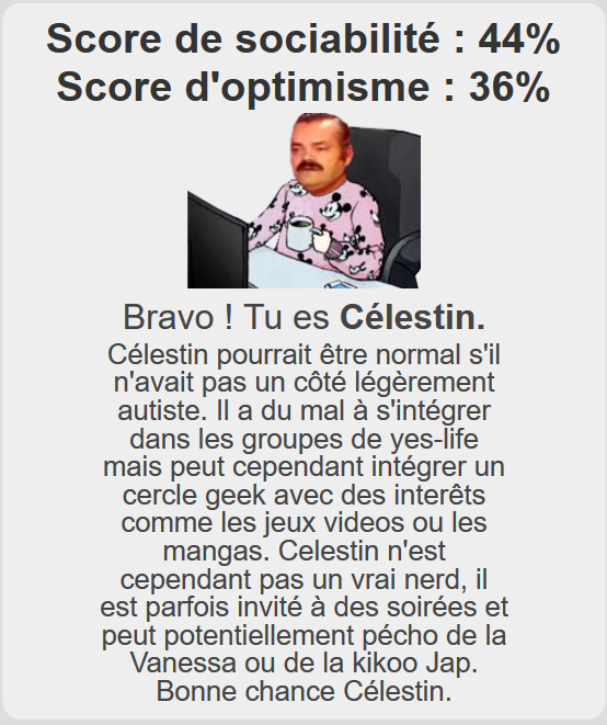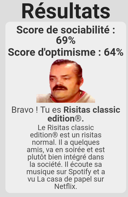 https://risitest.fr/results.html?e=68&d=70 je suis le risitas normal https://image.noelshack.com/fichiers/2018/29/6/1532128784-risitas33.png